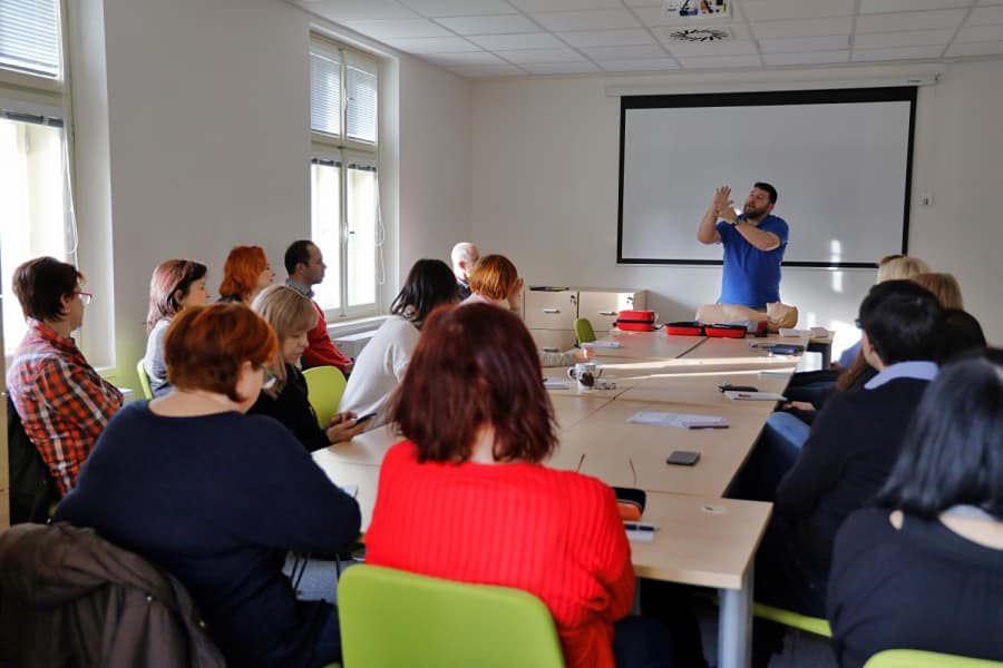Na radnici Prahy 3 se konalo školení první pomoci a práce s defibrilátorem.