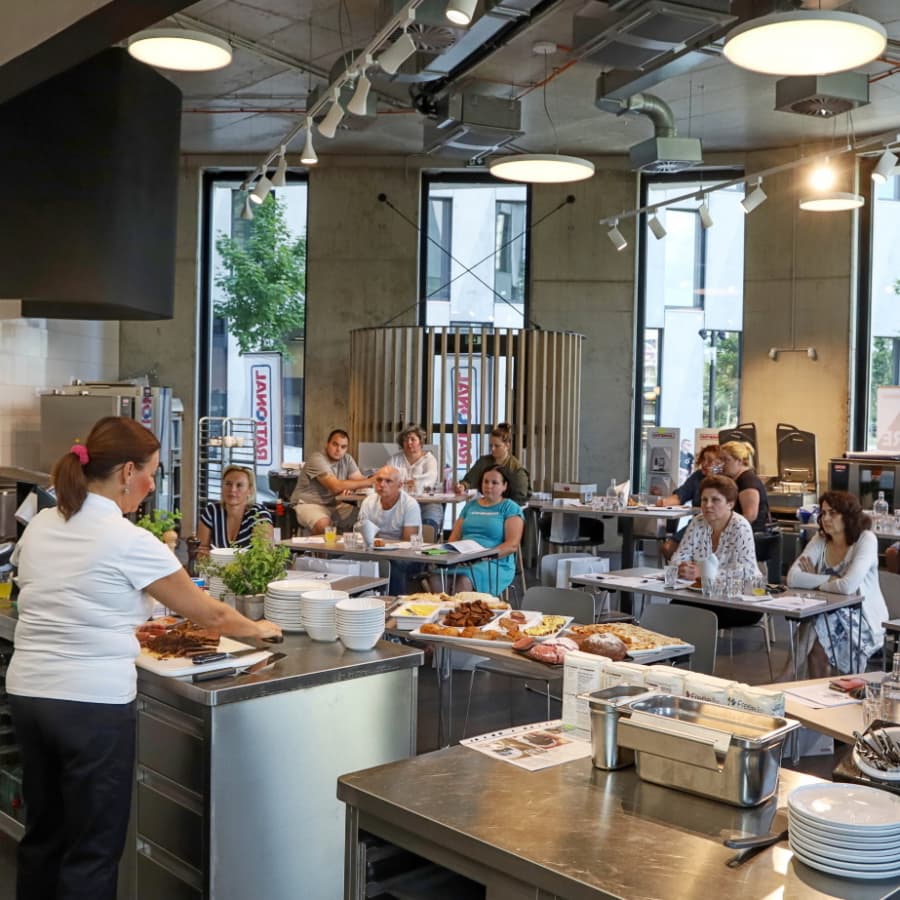 Městská část využila nabídku firmy Rational AG, uskutečnit školení v jejich gastrostudiu, kde mohly kuchařky vidět využití moderních technologií při přípravě dietních pokrmů. Aby se kuchařky zbavily ostychu z používání moderních technologií, například vaření přes noc, pomohla s prezentací a přípravou pokrmů, jedna z nich, šéfkuchařka školní jídelny ZŠ Chmelnice, Alena Hendrychová. Jídelna této základní školy vaří nejvíce dietních pokrmů ze všech našich jídelen, a také využívá moderní technologie na maximum. Šéfkuchařka tedy byla tou nejpovolanější lektorkou pro své kolegyně.