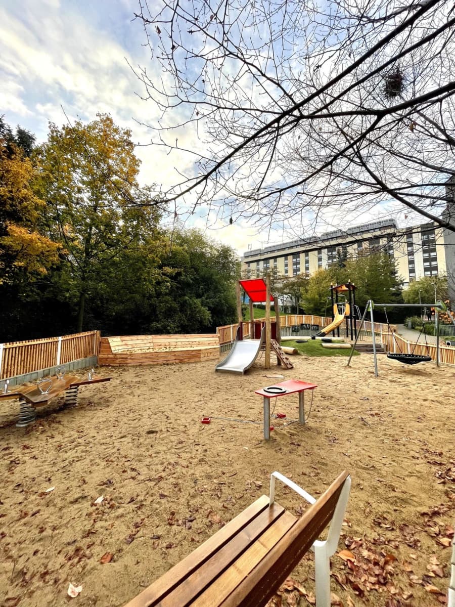Samozřejmostí je zachování zeleně v plném rozsahu, ponechání oblíbených herních prvků, významné rozšíření a doplnění ploch pro sezení a relax a také kompletně vyměněný hygienicky certifikovaný písek.