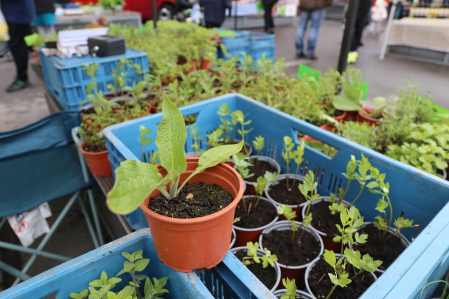 Rozhodl jsem se hned na začátku, asi před třemi lety, že nebudu používat žádnou chemii — jen tak dosáhnu opravdové kvality. Bylinky prodávám na trzích, nejčastěji tady na Jiřího z Poděbrad, ale potkat se můžeme i v Karlíně nebo u nás v zahradnictví. Zákazníkům dávám rostliny převážně v květináčích, protože jen tak vydrží dlouho čerstvé, ale okrajově nabízím i řezané nebo sušené. Oblíbených bylinek mám několik. Třeba taková bazalka. K mozzarelle a do salátů se nejvíc hodí citronová, kterou málokdo zná. A potom kostival. Pokud si zlomíte ruku nebo natáhnete sval, je velmi užitečný. Nejlepší je připravit si na noc teplý kašovitý obklad z jemně rozemletého nebo nastrouhaného čerstvého oddenku. Ten smícháte s horkou vodou a pár kapkami oleje a vytvoříte lepkavou kaši. Tu už jen namažete na postižené místo a zabalíte látkou. Zábal je dobré nechat působit přes noc a bolest bude rázem pryč.