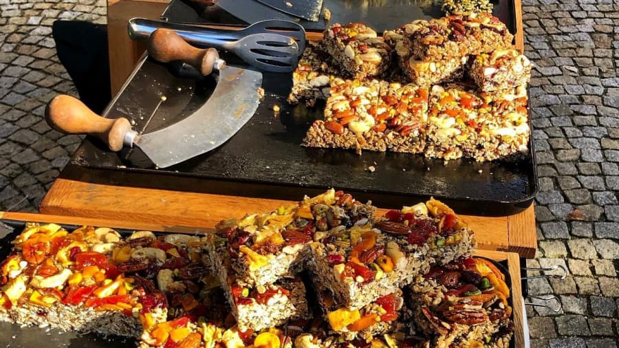 Pět let jsem měl veganské bistro Doruky drink, kde jsem prodával šejky a drobné občerstvení, ale pořád jsem hledal výjimečný dezert. Produkty od oslovených firem mě nezaujaly, tak jsem začal experimentovat sám. Na sociálních sítích jsem si našel recepty na veganskou granolu a půl roku jsem vytrvale zkoušel její přípravu. Až jsem na to přišel a rozhodl se jít s produktem ven. Trhy na Jiřáku se logicky nabízely, protože na Praze 3 žiji téměř 50 let a zřídil jsem si tu výrobnu, ve které mlsy připravuji. Není to klasická granola, která by měla obsahovat 70 % vloček a je určená spíše k přípravě kaše. Já jich do mlsu dávám jen čtvrtinu, takže mají formu pevného řezu nebo tyčinky.