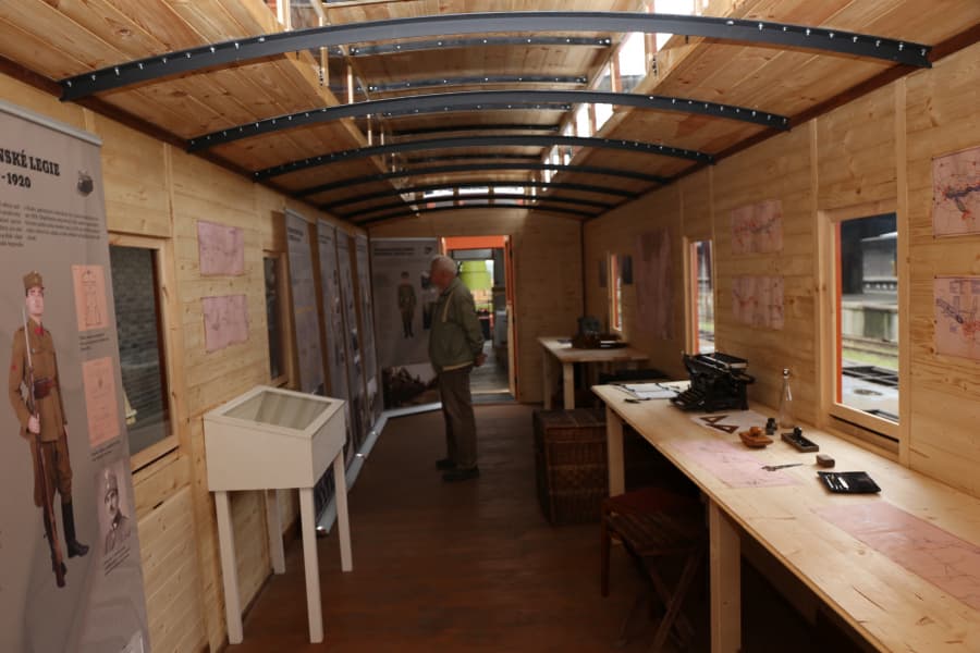 Replika legionářského vlaku, který se stal domovem československých vojáků během přesunů po Sibiři, je do konce října k vidění v areálu nákladového nádraží.