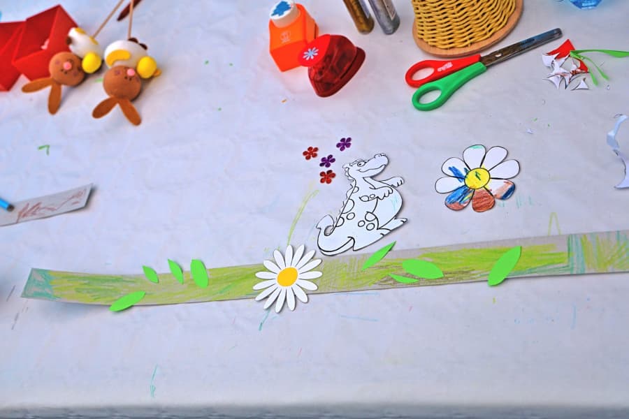 Čelenka s kvítky – papírová čelenka, která se dozdobí kvítky a dalšími třpytivými doplňky