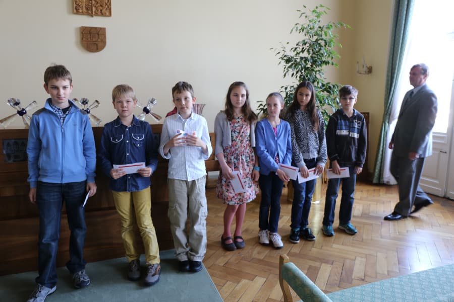 Z Obřadní síně si žáci odnášeli také ocenění za individuální soutěže – z matematických, jazykových, dějepisných a zeměpisných olympiád, předávali se také diplomy úspěšným řešitelům soutěže Za kapkou rosy. Kompletní výsledky na /souteze-pro-skoly/bodovani