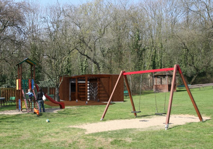 Jedno z nejkrásnějších pražských hřišť - Pod Kapličkou nabídne od jara návštěvníkům další novinku. V areálu vyroste občerstvení se zázemím pro správce hřiště.