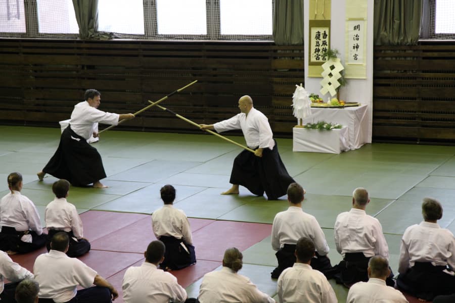 Pětasedmdesát účastníků z mnoha evropských zemí, včetně čtyř českých členů školy Kashima kenjutsu, v úvodní části pod vedením japonských učitelů předvádělo, jak takový seminář vlastně vypadá. Jednoduše vyjádřeno - duchovní disciplína a absolutní soustředěnost na danou myšlenku, vše v obřadním tichu. To je zřejmá podstata semináře v souvislosti s chrámem Meiji Jingu, jehož v Praze zastupoval kněz Taisuke Kadosaki.