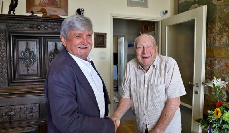 K jubilejní stovce přišel Luboši Perkovi (* 26. 7. 1919) pogratulovat místostarosta Tomáš Mikeska. Expert na problematiku geostacionární dráhy v kosmickém prostoru nebo kosmický odpad bydlí na Praze 3 přes šedesát let.