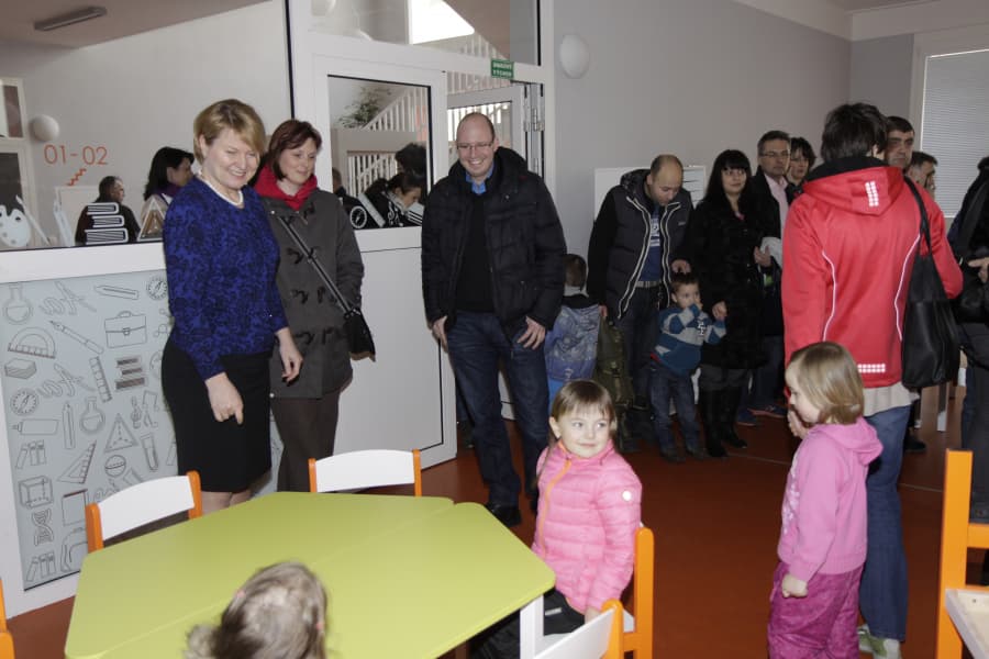 Nově vybudovaná mateřinka při Základní škole Jarov má kapacitu 112 míst a od 7. dubna ji začne navštěvovat 41 dětí. Prostory ještě vonící novotou si v doprovodu ředitele ZŠ Jarov Stanislava Šebla, zástupkyně pro Mateřskou školu Jarov Hany Hlaváčkové a řady rodičů s dětmi prohlédla také starostka Vladislava Hujová.