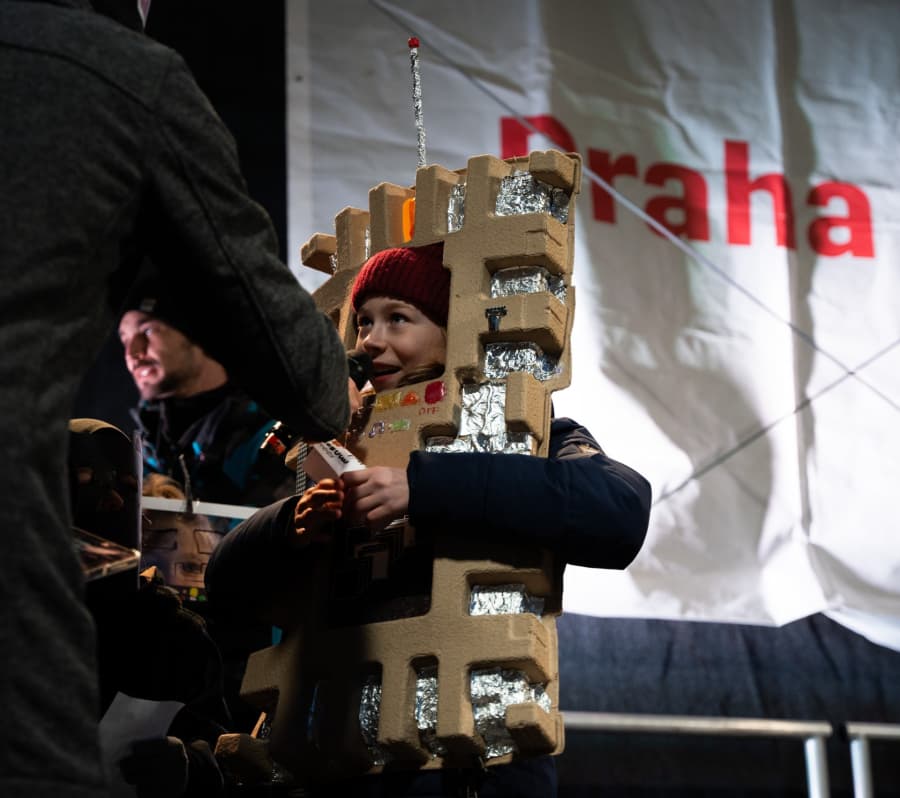 Průvod pokračoval dál ulicemi Štítného a Husineckou až do parku Radost, kam dorazil kolem páté hodiny. „Atmosféra je skvělé, účastníků je snad ještě víc než vloni a lidí v maskách přišlo určitě víc,“ vítal účastníky průvodu starosta Vronský v parku Radost.