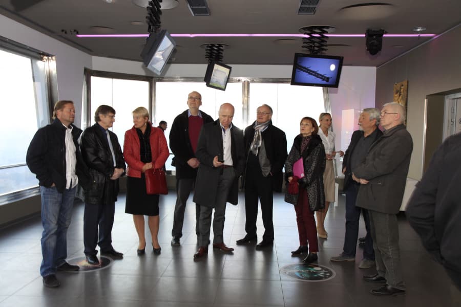 V úterý 3. listopadu proběhlo setkání tvůrců a realizátorů stavby u základního kamene. Doc. Ing. arch. Aulický, Ing. Rovný, Ing. Hrabovský, Ing. Kašpárek, Ing. Pavlíček, Ing. M Kusbach a Ing. Kallista si se starostkou MČ Praha 3 Vladislavou Hujovou společně připomněli začátky této stavby a její přestavbu do současného stavu.