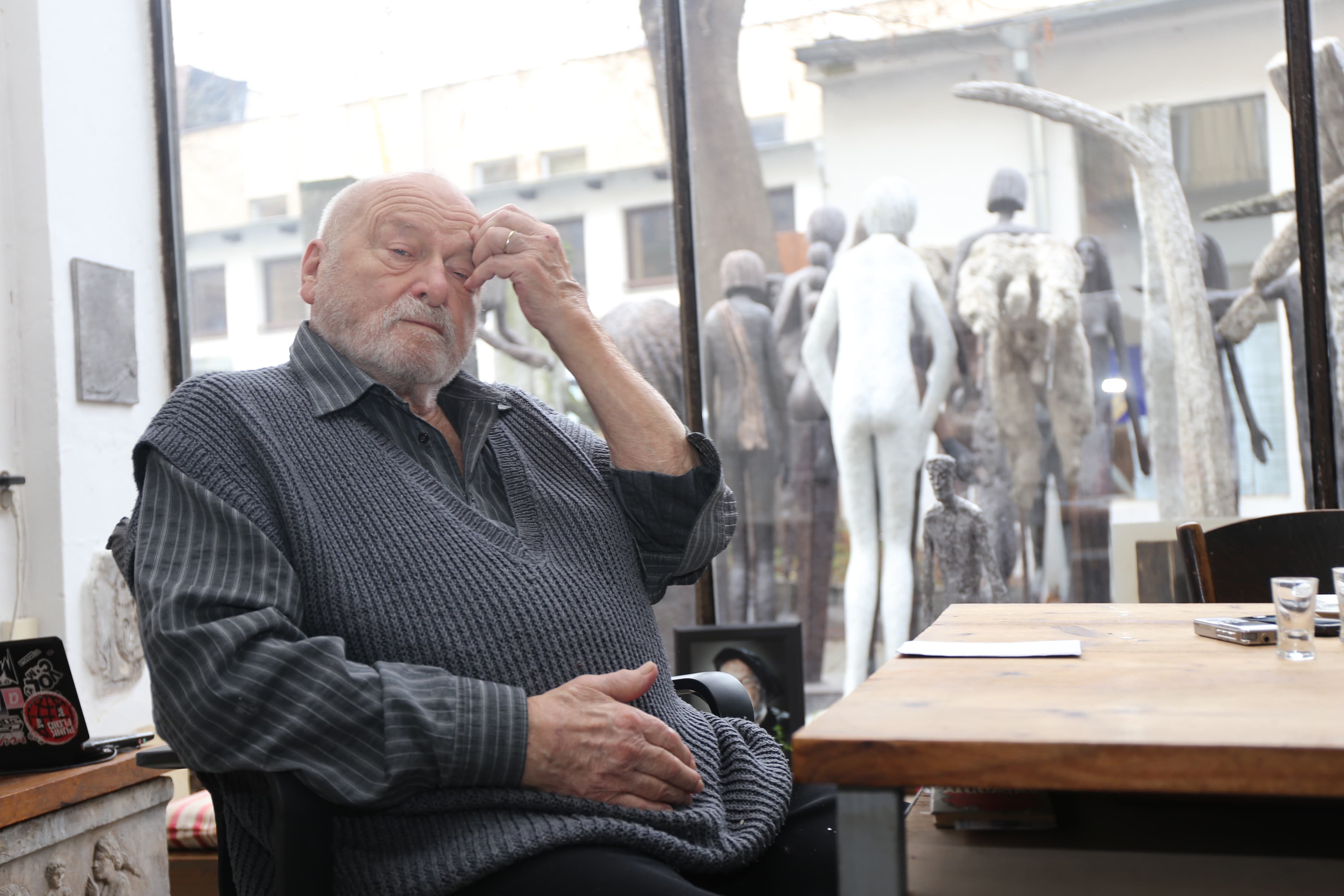 Zkraje jsem tápal, nevěděl jsem, jak se umělecky vyjádřit. Víte, já začal školu v pětačtyřicátém, pak jsem studium přerušil a šel na dva roky na vojnu. A když jsem se vrátil, tak bylo všechno jinak, vládl socialistický realismus. Své první významné dílo, Rodinu, v níž jsem zobrazil svou ženu Evu, sebe, Polanu a Jasana, jsem vytvořil v roce 1958. Od té doby počítám svůj sochařský čas. Až do poloviny šedesátých let jsem se ale nemohl rozhodnout, zda budu dělat figury, nebo „sloupky“, tedy postavy sevřené do kamenných nebo betonových kvádrů. Ta dvoukolejnost mne trápila. Nakonec jsem se rozhodl pro figury, které dělám dodnes.