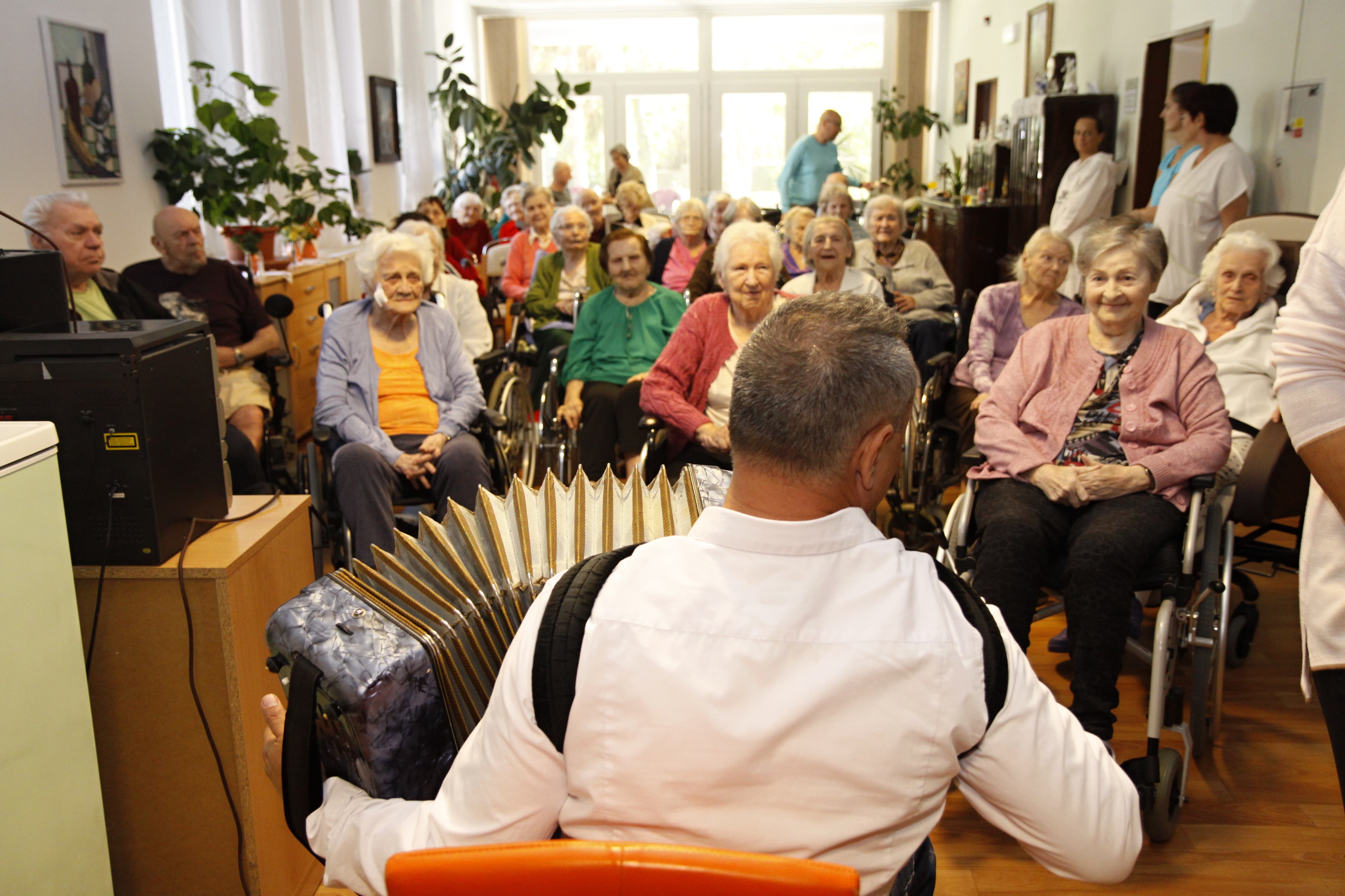 Senioři oslavili svůj svátek koncertem v Atriu a zpíváním s harmonikou