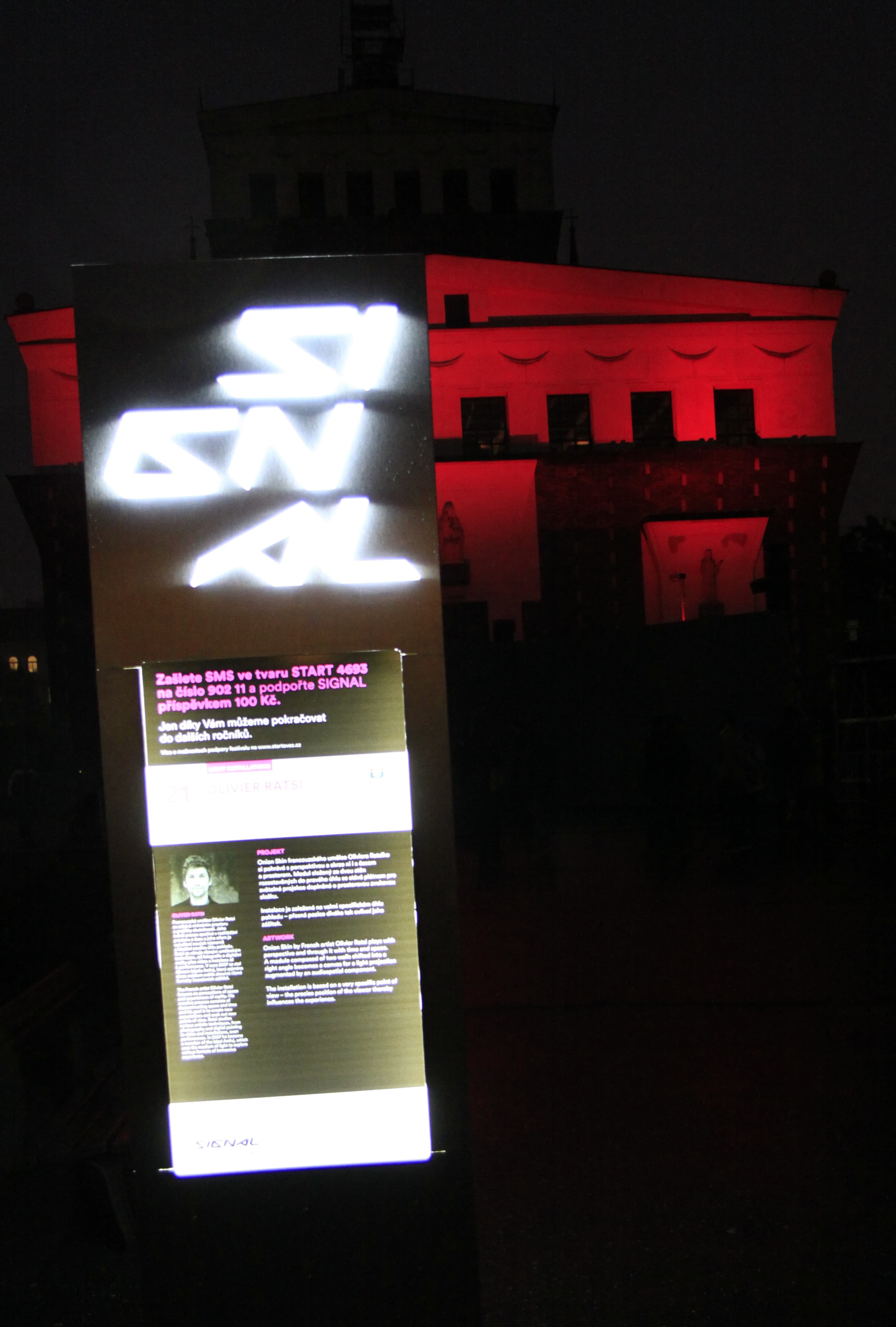 Právě tato světelná projekce je jednou z 21 instalací a videomappingů, které letos od 15. do 18. října vždy od 19 do 24 hodin rozzáří noční ulice a budovy Prahy. Letošní Signal festival se koná za podpory městské části Praha 3, která je také partnerem lokace na náměstí Jiřího z Poděbrad.