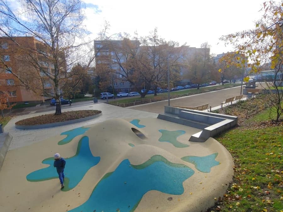 Pro děti byla vytvořena netradiční terénní modelace s nerezovým tunelem s pochozím povrchem z měkčeného materiálu jako prevence úrazu. Středová plocha parku má povrch mlatový a byla použita světlá velkoformátová dlažba. Vše je doplněno moderním dřevěným mobiliářem a novým osvětlením.
