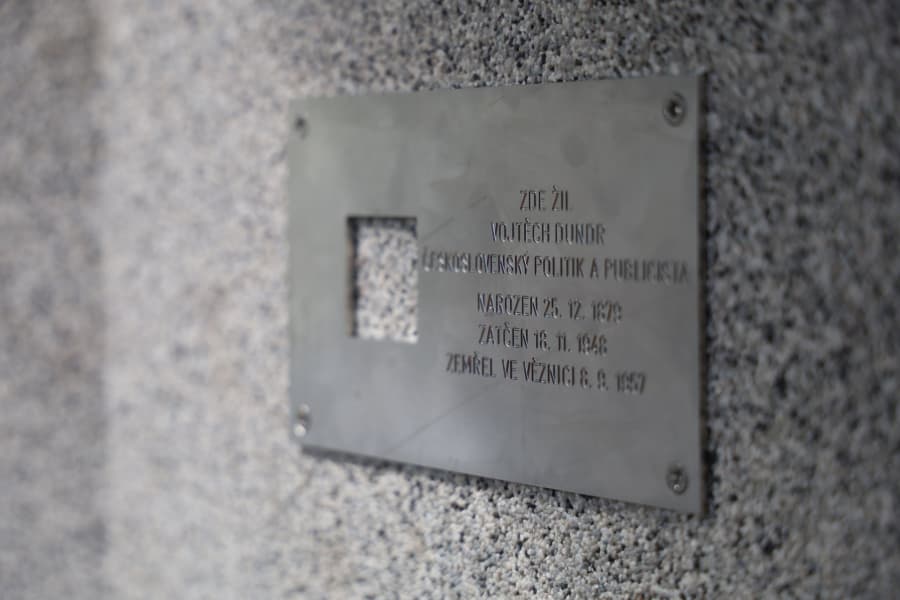 Tabulka v Husinecké ulici připomíná Vojtěcha Dundra