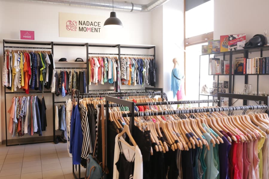 Sběru šatstva a jeho dalšímu prodeji za účelem pomoci třetí straně se věnuje taky síť secondhandů Moment, která vznikla před deseti lety v Ostravě. Teď má deset provozoven, z toho tři v Praze. Pobočka v Seifertově ulici existuje sice teprve od února, přesto má už své stálé návštěvníky. „Lidé nám nosí oblečení různých značek i stupně obnošení. Zákazníci si tak u nás můžou koupit kousky od 20 korun, jako jsou třeba plavky, sportovní čelenky, ponožky nebo punčocháče, ale i krásné šaty za šest stovek,“ říká vedoucí obchodu Iva Husníková. V nabídce má taky dětské hračky, boty, kabelky, bižuterii, nádobí nebo dekorace. Menší výběr je tu z pánského a dětského oblečení a nadměrných velikostí. Část výtěžku z prodeje dostává nezisková organizace Platforma pro včasnou péči, která je rozděluje ohroženým dětem.