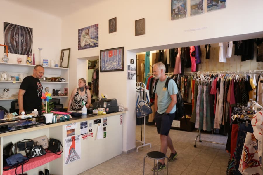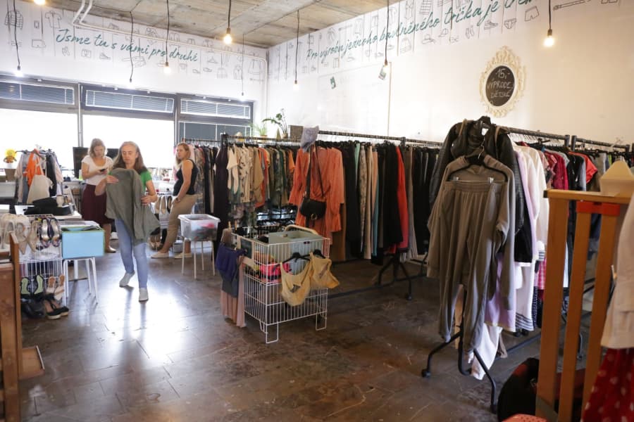 Na udržitelné zacházení s oblečením se zaměřují i secondhandy. Charitativní obchod Comeback shop Progressive už sedm let sídlí v Rokycanově ulici a celou dobu pomáhá bývalým drogově závislým začlenit se zpátky do společnosti. „Působí tu jak lidi se zkušenostmi s drogami, tak i sociální pracovníci nebo stážisti. U nás je ale důležitá inkluze. Když k nám přijde zákazník, nepozná, kdo je sociální pracovník a kdo ‚klient‘, který tu pracuje. Všichni v obchodě dělají stejnou práci a jsou si rovni,“ vysvětluje Dominik Ivanys, který spolu s Janem Skopcem podnik vede.