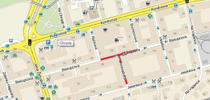 Biskupcova/Ambrožova - uzavření komunikace a vyparkování vozidel v den konání akce od 9:00 – 22:00. Kvůli omezení průjezdu komunikací je vyznačena objízdná trasa ze směru ul. Ambrožova, Jeseniova, vedená ul. Jeseniova, Na Vápence, Buchovcova.