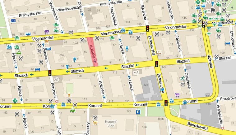 Kolínská - uzavření komunikace a vyparkování vozidel v den konání akce od 10:00 – 20:00 mezi ulicemi Vinohradská a Slezská.