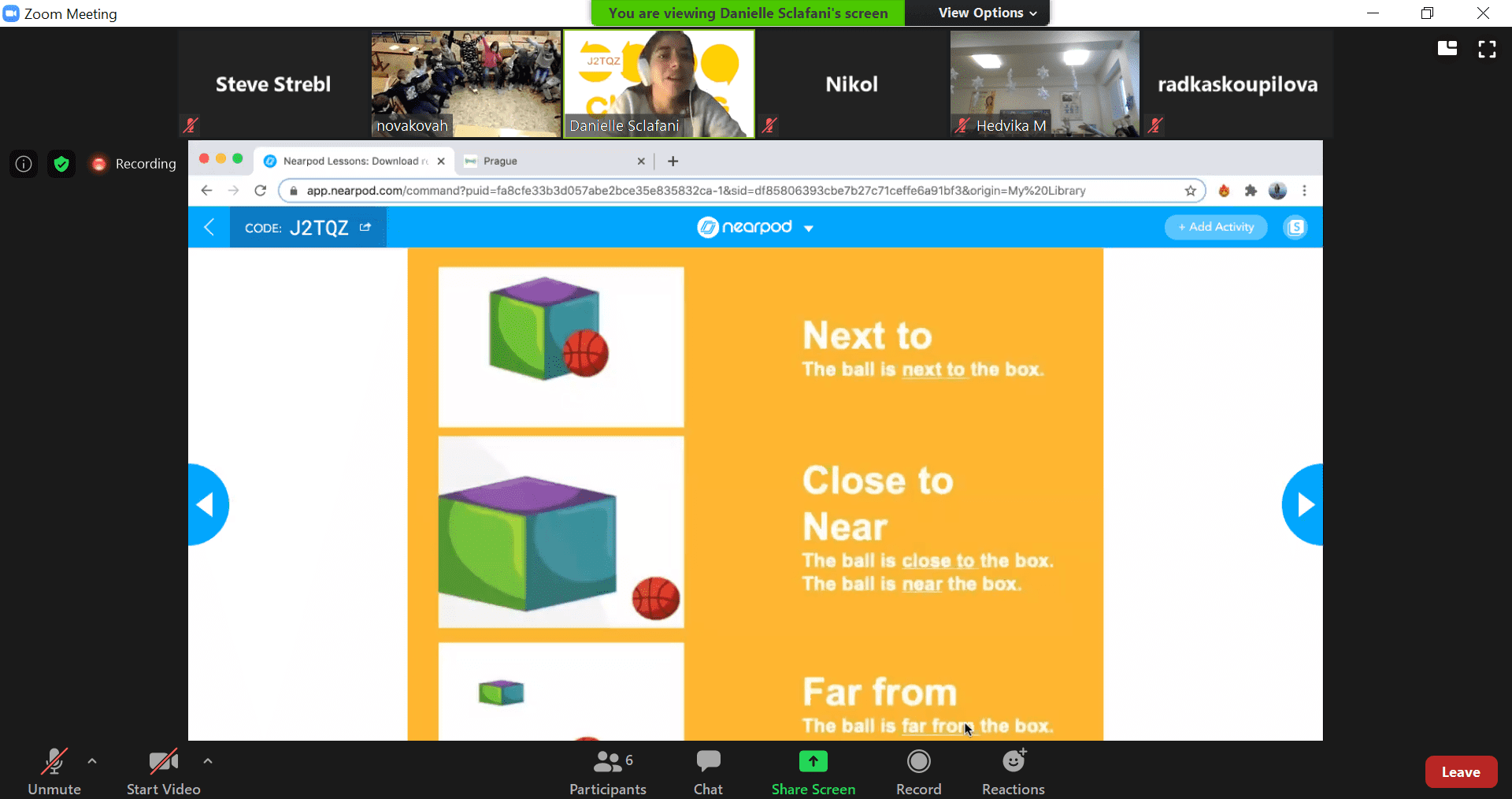 Sledovali jsme, jak hodina s americkou učitelkou Danielle, která se toho času nachází ve Španělsku, probíhá. A musíme říct, že to byla radost sledovat. Zvolená skupina dětí je aktivní, paní učitelka Nováková děti krásně zvládá a všichni, kdo jsme hodinu sledovali, jsme si odnesli výborný dojem.