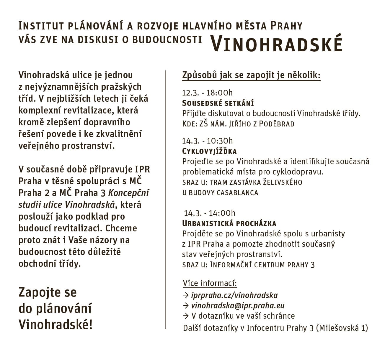 Institut plánování a rozvoje hlavního města Prahy vás proto zve na diskusi s urbanisty o budoucnosti Vinohradské během těchto akcí: