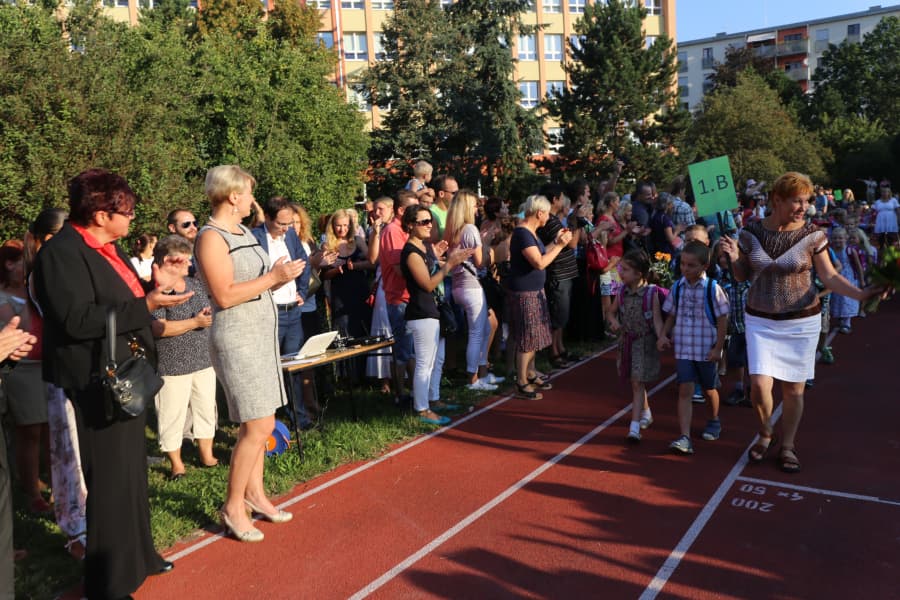 Skvělá nálada, smích a bouřlivý šepot panovaly 1. září na sportovním hřišti ZŠ a MŠ Chmelnice, kde v seřazených zástupech čekali na vítání prvních ročníků starší školáci, aby společně zahájili nový školní rok.