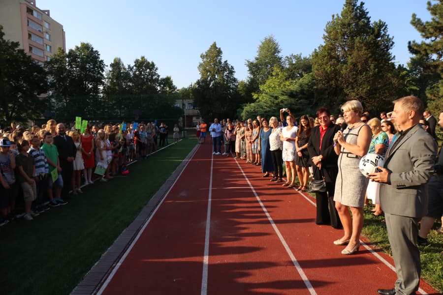 „Moc vás tu všechny po prázdninách vítám a mám radost, že vás tu můžu navíc přivítat na novém sportovním hřišti, které financovala žižkovská radnice částkou 2,7 milionu korun a které tímto slavnostně otvíráme,“ uvedl ředitel Václav Havelka.