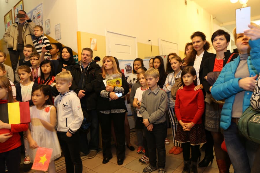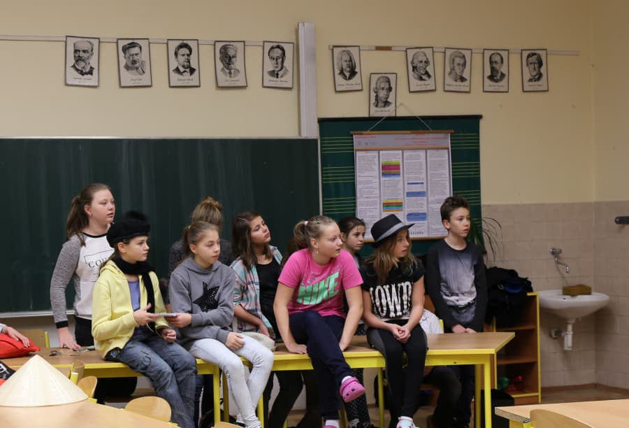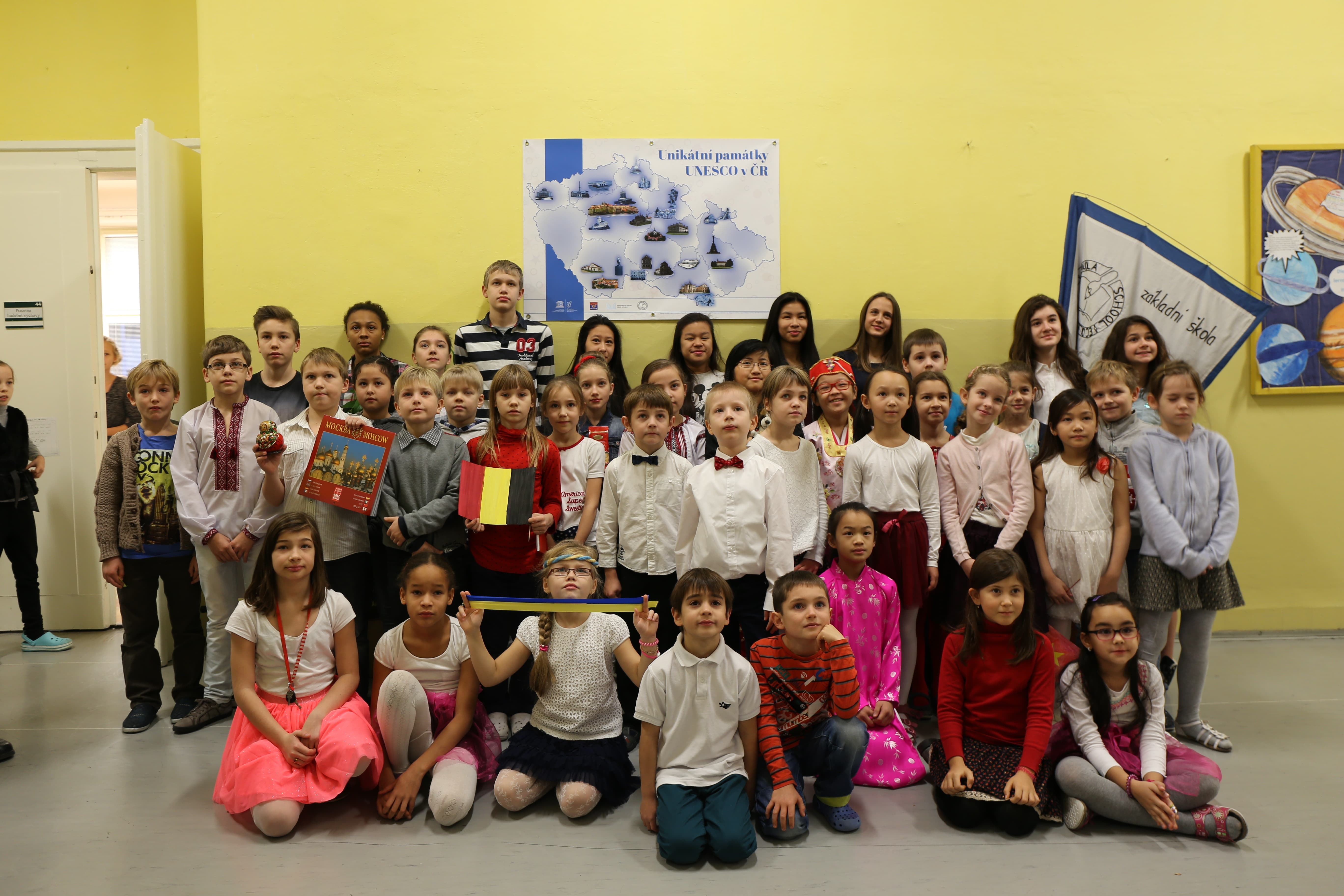 Dívka v korejském kroji, další s belgickou či vietnamskou vlajkou v ruce nebo jen hrdě držící stužku v ukrajinských národních barvách se 9. prosince fotily i se svými učiteli a rodiči na chodbě v 1. patře v ZŠ Lupáčova. Nad nimi visela mapa památek, o jejíž vznik se tito žáci autorsky zasloužili a pod níž jsou uvedena i jejich jména. Focení s mapou bylo součástí programu závěrečné slavnostní konference projektu So Far So Near