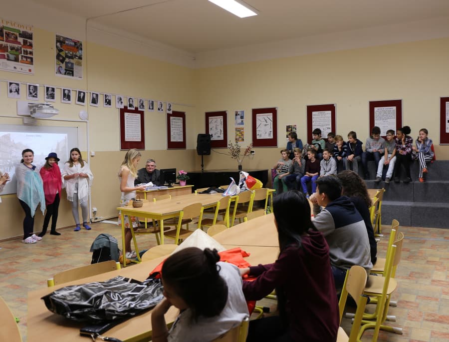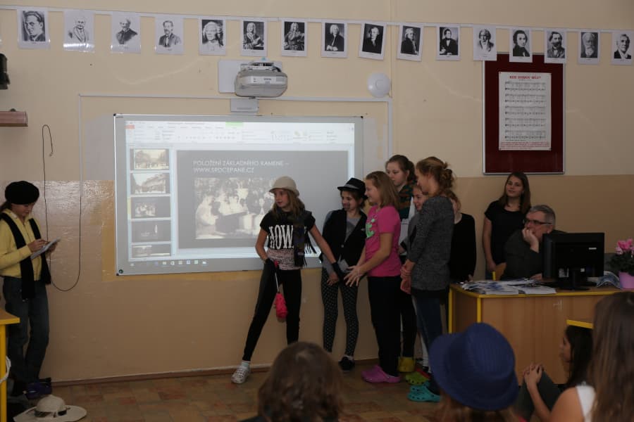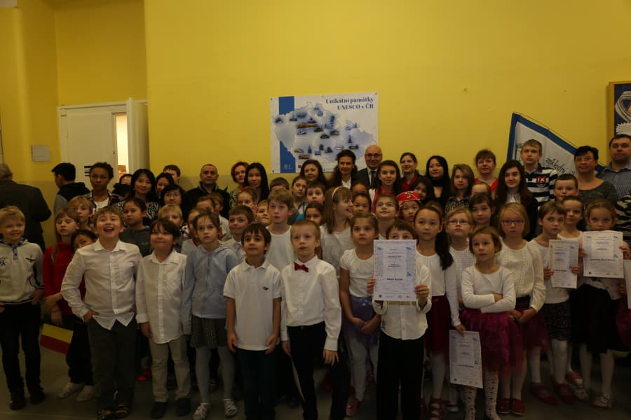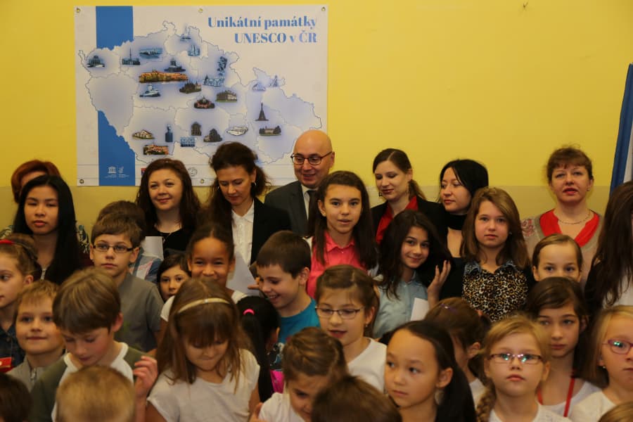 učitele a především jejich rodiče, kteří ve svém volném čase pomáhali s překladem textové legendy k unikátní mapě, zástupce starostky David Gregor. Ta obsahuje popis památek UNESCO v ČR (a dalších kandidátů na zápis) kromě jiného v angličtině, němčině, francouzštině, slovenštině, slovinštině, ale i v exotičtějších jazycích jako například v čínštině, japonštině či korejštině.