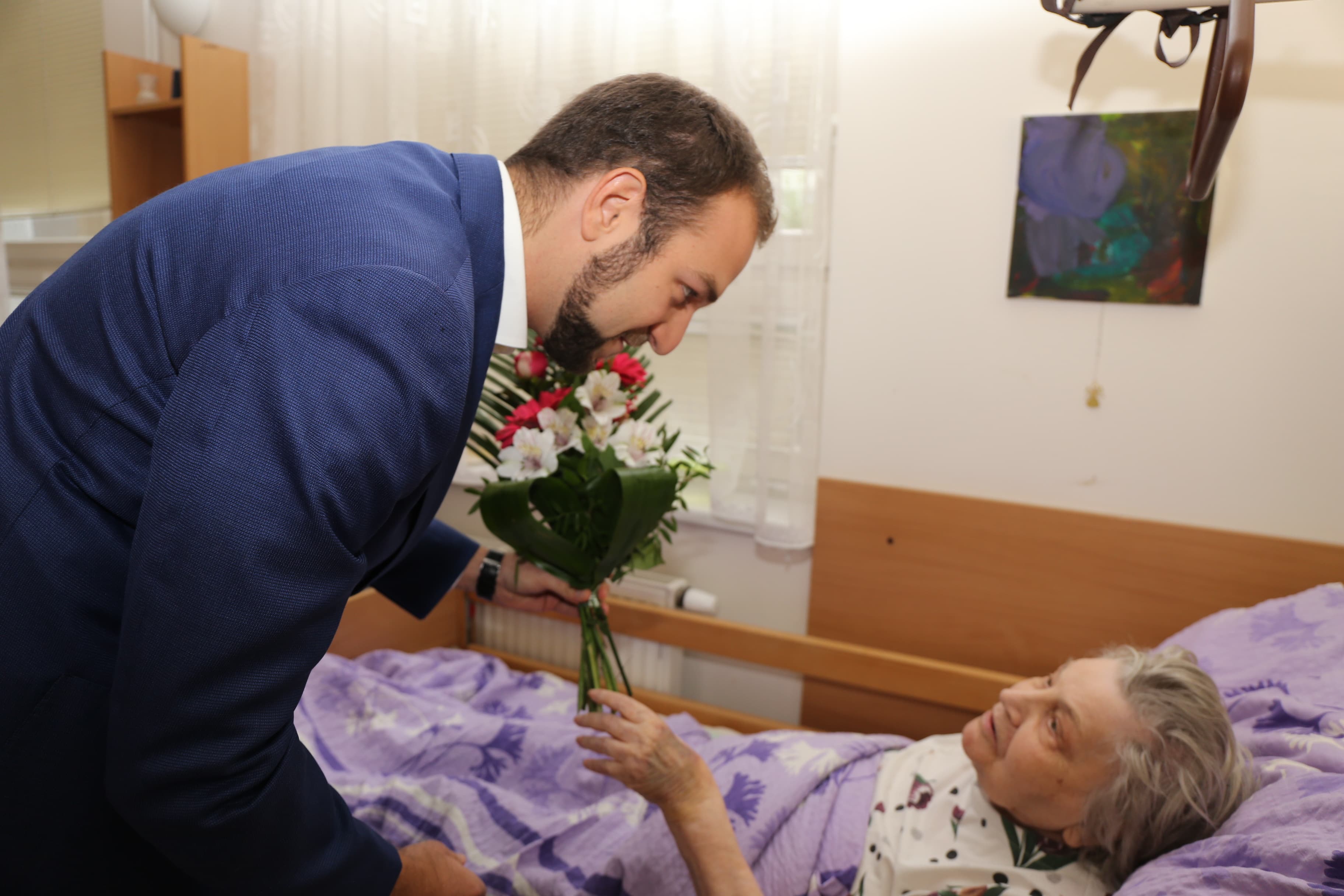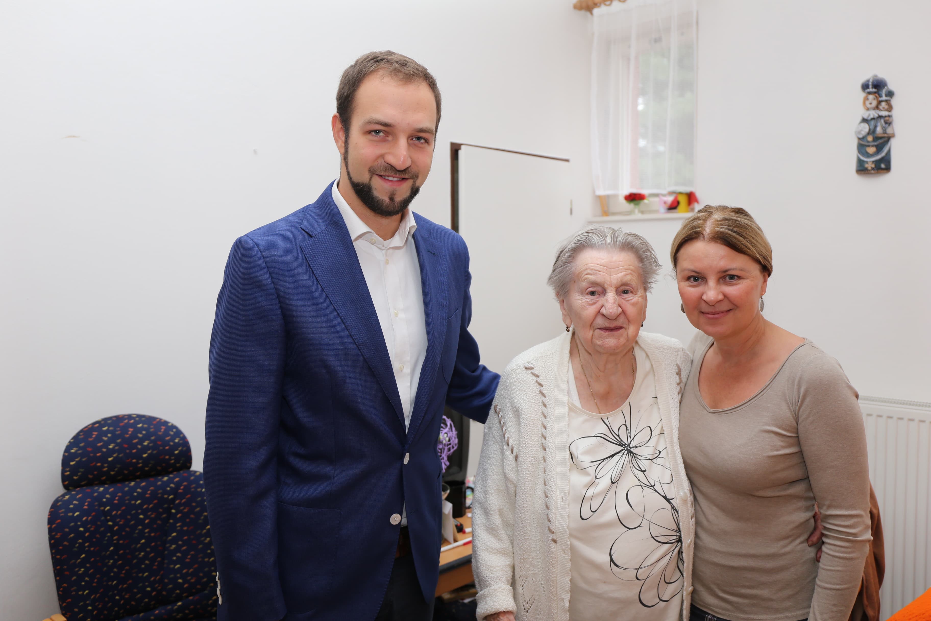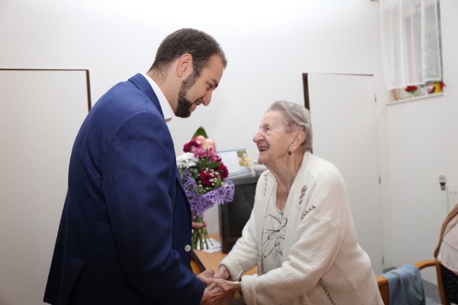 Během návštěvy v Ošetřovatelském domě Praha 3 v Habrové ulici poblahopřál zástupce starostky Alexander Bellu dvěma seniorkám, které právě oslavily devadesáté narozeniny.
