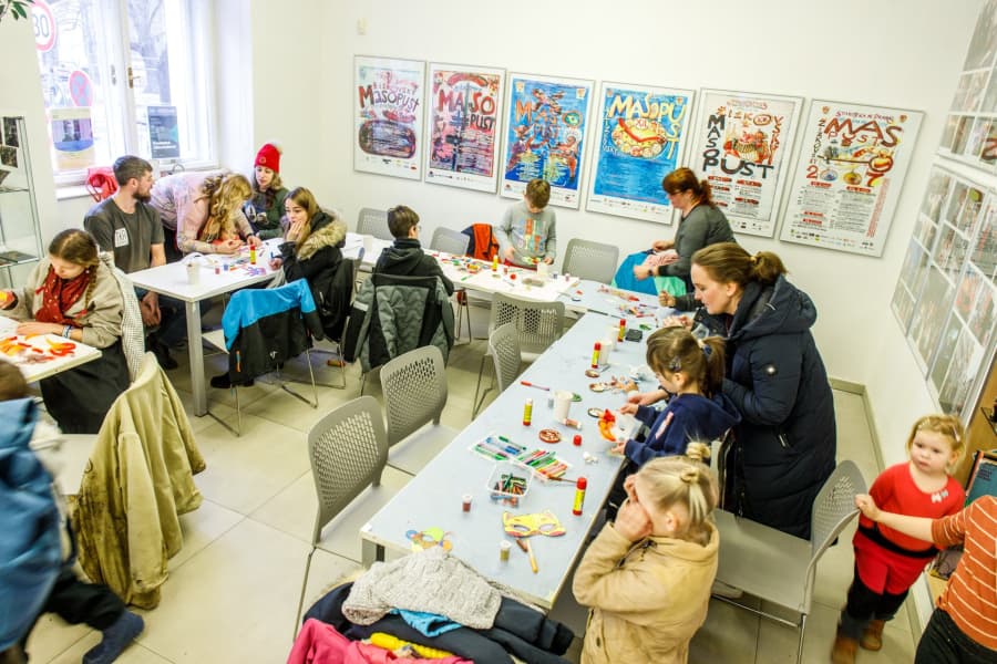 Neméně úspěšné byly i dva workshopy na výrobu masek – jeden v Infocentru Prahy 3 a druhý v Atriu Žižkov. Oba byly nabité do posledního místa kapacity, a tak jsme v průvodu mohli vidět mnoho zvířecích škrabošek, úžasně barevné i střapaté masky, které si tu děti vyrobily. Velkému úspěchu se těšila i kočovná herna Sládkovna, u jejíchž her se zabavili malí i velcí. Na závěr ještě vůbec poprvé veřejně zazněla Píseň žižkovská a symbolicky se pohřbila basa, což znamenalo konec masopustního veselí, a až do Velikonoc tak nastal čas půstu.