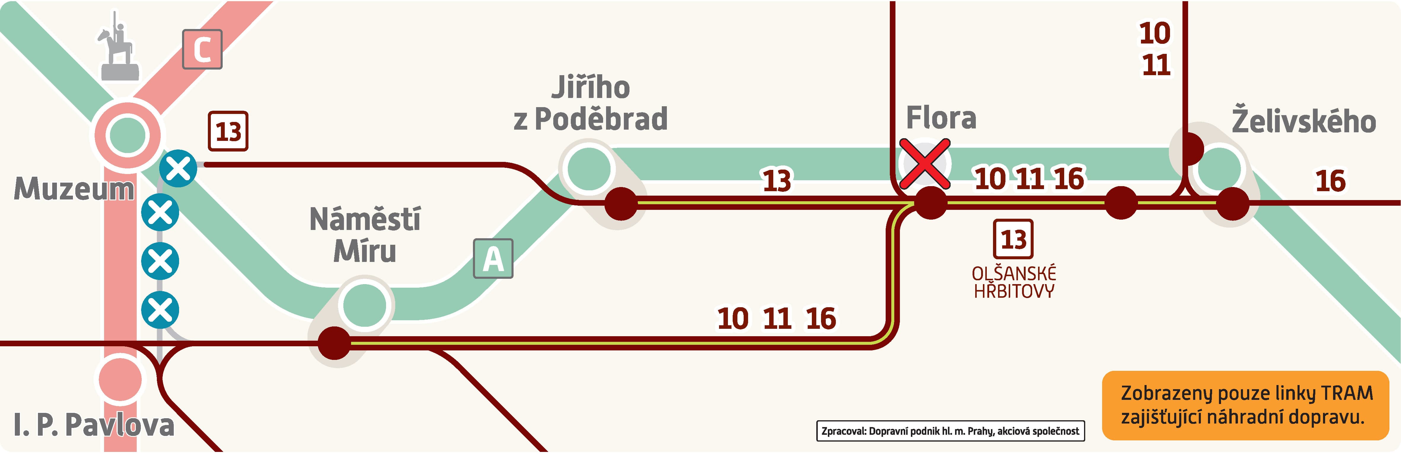 Upozornění na dlouhodobé uzavření stanice metra Flora